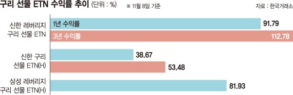 특히 지난 2018년 상장한 신한금융투자의 신한 레버리지 구리 선물 ETN은 최근 1년간 91.79%의 수익률을 시현했다. 같은 기간 삼성 레버리지 구리 선물 ENT(H) 수익률도 81.93%였다.
