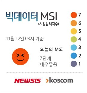 뉴시스와 코스콤이 공동으로 뽑아낸 빅데이터 MSI(http://m.newsis.com/stock.html, 모바일 전용)에 따르면 전 거래일 오후 4시부터 이날 오전 8시까지 집계된 코스피 MSI 레벨은 전 거래일과 동일했다.