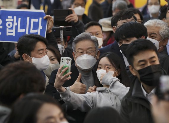 수많은 지지자 인파 속에 이 후보는 중앙전통시장 상인들과 직접 인사를 나누며 눈을 맞추는 등 소통 행보를 이어갔다.