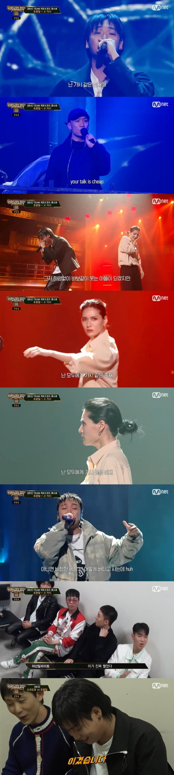 래퍼 저스디스도 출격했다. 그는 묵직한 랩으로 조광일 무대에 힘을 보탰다. 소름돋는 무대가 끝나자마자 환호성과 박수가 터져 나왔다. "훅이 너무 슬프다", "무대 구성 정말 좋다", "진짜 멋있다" 등 극찬 세례가 쏟아졌다.