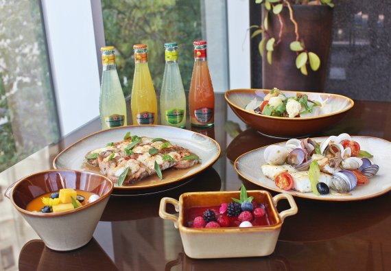 인당 금액 추가 시 주중 런치에는 이탈리아 프리미엄 워터 브랜드 ‘산펠레그리노’의 스파클링 과즙 음료 4종을 무제한 제공한다. '로싸'(레드 오렌지), '리모나타'(레몬), '아란시아타'(오렌지), '폼펠모'(자몽) 등이다.