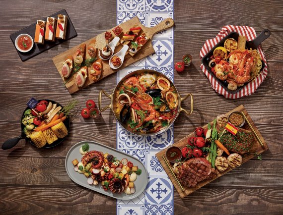 올리브와 게살, 새우, 다양한 햄과 치즈를 담은 애피타이저 격의 '모둠 타파스'와 양대 해산물 요리 '시푸드 빠에야' '감바스 알 아히요' 등이 준비된다.