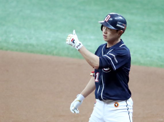 당초 두산은 정수빈(중견수)-강승호(2루수)-호세 페르난데스(지명타자)-김재환(좌익수)-박건우(우익수)-허경민(3루수)-양석환(1루수)-박세혁(포수)-박계범(유격수)으로 이어지는 선발 라인업을 내놨다.