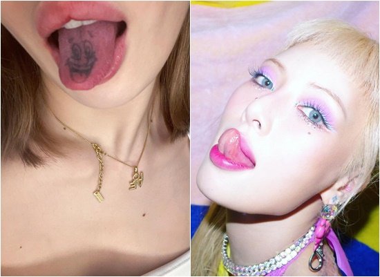 특히 현아의 혓바닥에는 사람 얼굴 그림이 그려져 있어 팬들의 눈길을 사로잡는다.