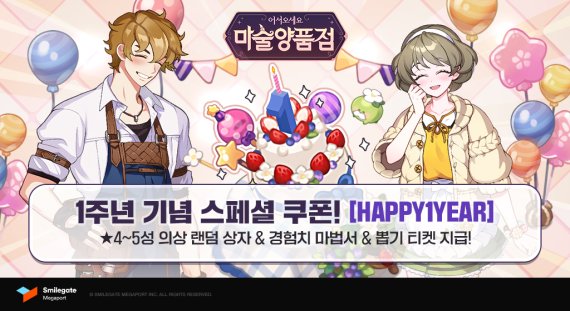 스마일게이트 메가포트는 마술양품점 서비스 1주년을 기념해 유튜브 라이브 스트리밍 방송과 쿠폰 제공, 출석 이벤트 등 다양한 혜택을 마련했다고 17일 밝혔다.