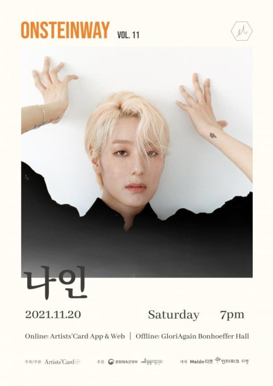 아티스츠카드 관계자는 "라이브 방송에서 들을 수 없던 나인의 매력을 볼 수 있는 무대가 될 것이다. 온스타인웨이 콘서트는 케빈오, 시와, 권순관 등 많은 인디 아티스트들과 함께할 예정"이라고 밝혔다.