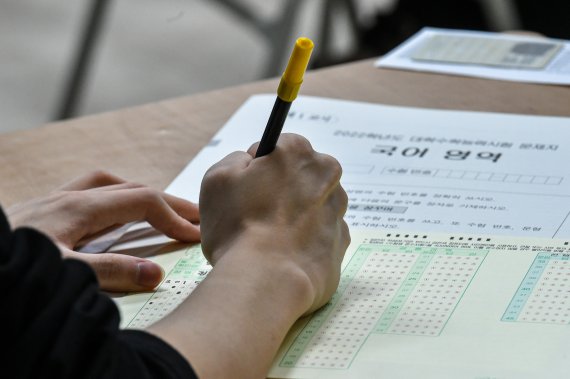 (경기=뉴스1) 김평석 기자,이윤희 기자,최대호 기자,유재규 기자 = 2022학년도 대학수학능력시험이 18일 오전 8시40분부터 경기지역 19개 시험지구, 349개(7321실) 시험장에서 일제히 시작됐다.