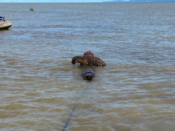 (서울=뉴스1) 최서윤 기자 = 지난 15일 콜롬비아 안티오키아 투르보시 레온강에서 카리브해와 이어지는 강어귀에 재규어 한 마리가 탈진해 표류하던 중 해군에 극적으로 발견돼 구조됐다고 현지 주간 세마나지가 보도했다.
