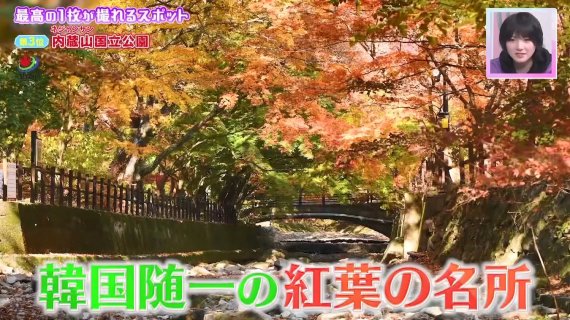 이달 초 방영된 프로그램에서 출연진들은 붉게 타오르는 내장산 단풍의 풍경을 감상하며 연신 감탄을 쏟아냈다. 방송에서는 내장산의 전경을 찍은 드론 영상과 붉게 물든 단풍, 그리고 케이블카 종착지에서 우화정 방향으로 바라본 영상이 송출됐다.