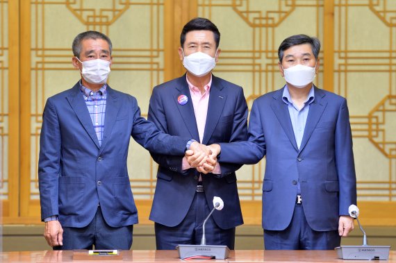 (포항=뉴스1) 최창호 기자 = 경북 포항 시내버스업체인 ㈜코리아와이드포항 노사가 2021년 임금인상과 단체협약을 체결했다.