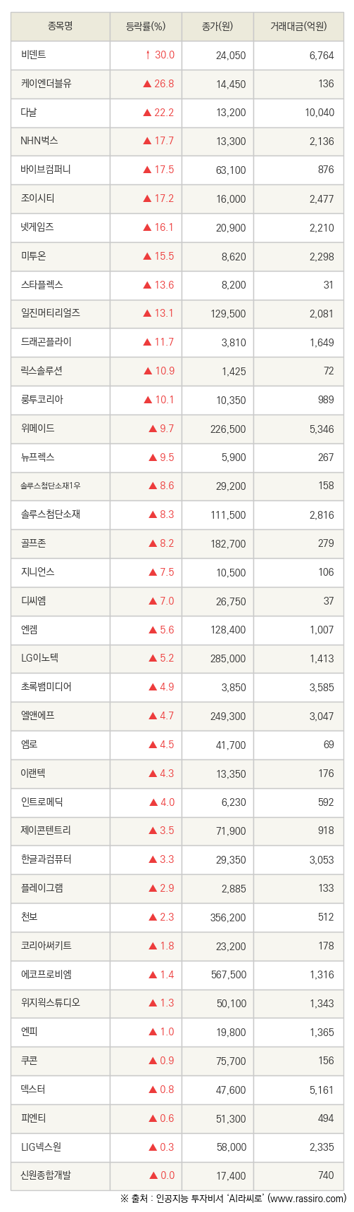 [fnRASSI]비덴트, 케이엔더블유 등 40종목 52주 신고가 경신
