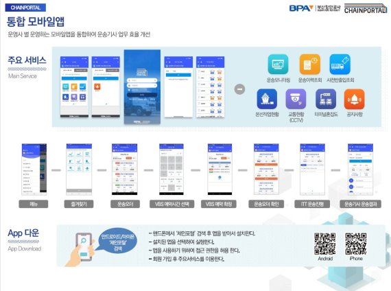 이번에 오픈한 모바일앱 서비스는 부산항만공사(BPA)에서 구축한 항만물류 플랫폼인 ‘체인포탈’에서 제공하는 기능이다.