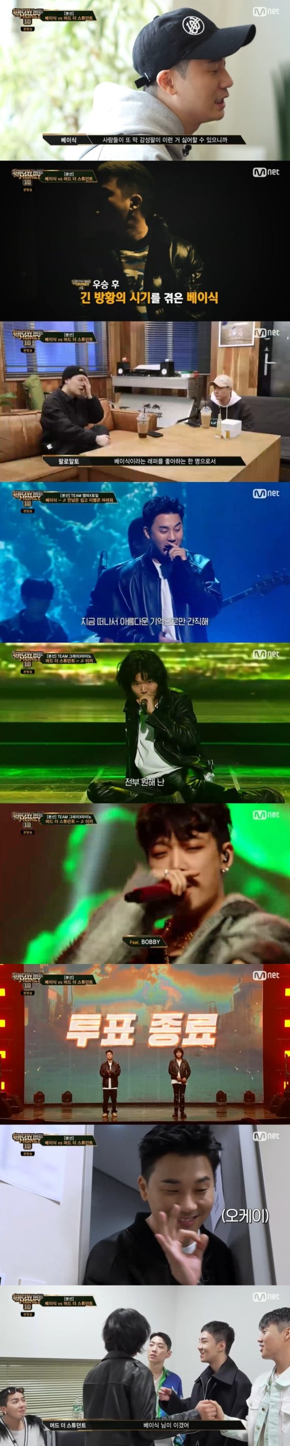 19일 오후 방송된 Mnet 예능 프로그램 '쇼미더머니 10'에서는 베이식, 머드 더 스튜던트가 본선에서 맞붙어 이목을 집중시켰다.
