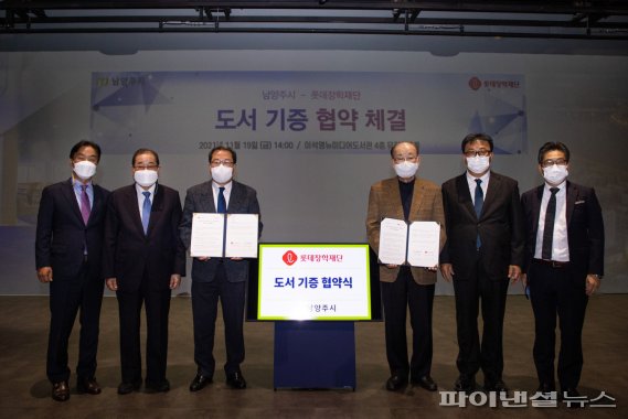 【파이낸셜뉴스 남양주=강근주 기자】 남양주시가 19일 이석영뉴미디어도서관에서 롯데장학재단과 3년간 년중 1억원 상당 도서를 기증하기로 협약을 체결했다.
