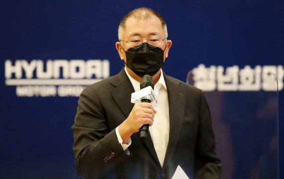 정 회장은 이날 경기 고양 현대모터스튜디오 고양에서 열린 '청년희망ON' 프로젝트 여섯 번째 파트너십 체결 간담회 이후 기자들과 만나 "전기차는 앞으로 2040년까지 계속 포션(비중)이 올라갈 것"이라며 이같이 말했다. 다만 정 회장은 "배터리나 반도체 부분이 같이 해결돼야 한다"며 "그런 부분에 대해 계획하고 있고, 계획대로 진행되고 있다"고 강조했다.