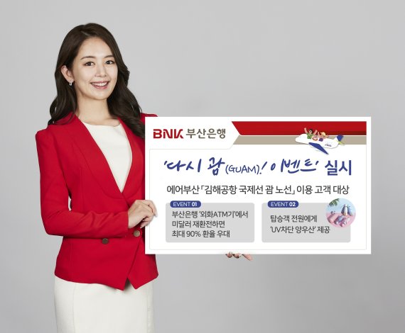 (부산=뉴스1) 이유진 기자 = BNK부산은행이 코로나19 여파로 약 20개월 만에 재취항하는 에어부산 괌노선을 기념해 ‘다시 괌(GUAM)! 이벤트’를 실시한다고 25일 밝혔다.