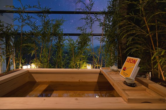 또 욕조 위에 편백 나무로 제작된 트레이도 설치해 스파를 비롯해 따뜻한 차를 마시면서 편안한 휴식을 누릴 수 있도록 했다. 욕조 주변은 대나무로 장식해 자연 친화적인 분위기로 조성했다.