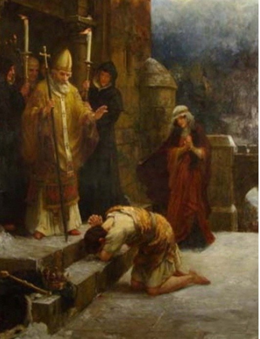 '카노사의 굴욕'은 1077년 1월 25일 서로마 황제 하인리히 4세가 교황 그레고리오 7세가 머물고 있는 이탈리아 카노사를 찾아가 '파문을 철회해 달라'며 3일간 맨발로 무릎을 꿇고 교황에게 애원한 사건을 말한다.