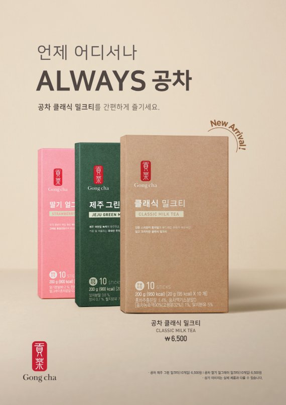 공차코리아 관계자는 "장소에 구애받지 않고 언제 어디서나 공차 밀크티를 마시고 싶다는 고객 분들의 니즈에 호응하고자 클래식 밀크티 제품을 선보이게 됐다"며 "풍부한 맛의 공차 밀크티를 집에서도 간편하게 즐기시길 바란다"고 전했다.