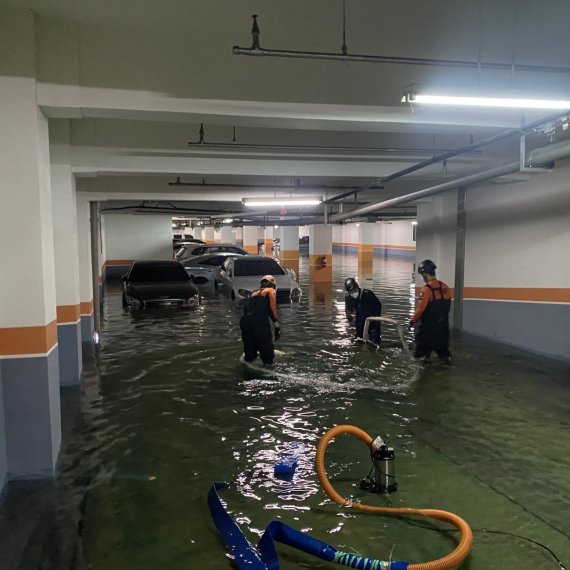 신고를 받고 출동한 소방당국은 대원 56명과 수중펌프 등 장비 18대를 투입해 배수작업을 진행 중이다.