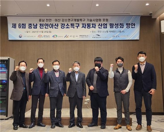 (서울=뉴스1) 김형택 기자 = 한국자동차연구원(원장 허남용) 강소특구지원단(단장 홍성휘)은 11월 29일 충남 천안 소노벨 에메랄드 Ⅰ홀에서 ‘제6회 충남 천안·아산 강소연구개발특구 기술사업화 포럼’을 개최했다.