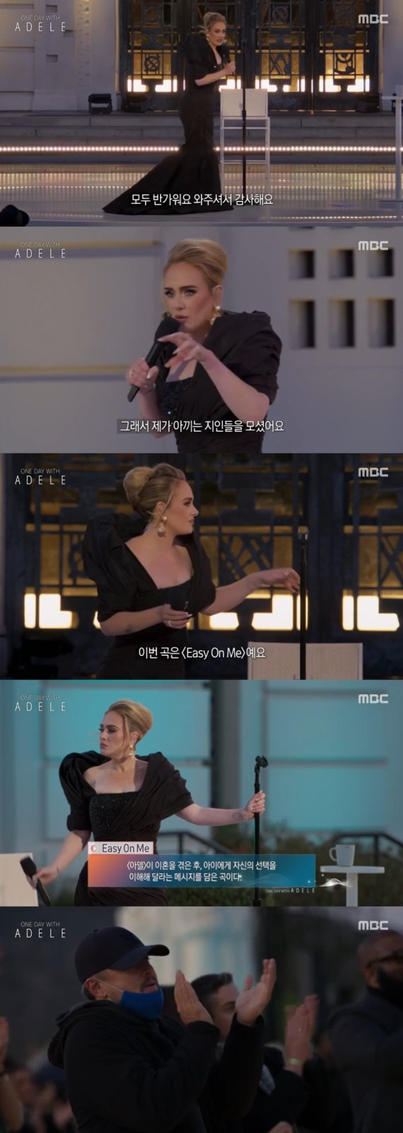 30일 오후 방송된 MBC 창사 60주년 특별기획 '원 데이 위드 아델(One Day with Adele)'에서 아델은 이혼 후 발표한 '이지 온 미(Easy On Me)'를 라이브로 선보였다.