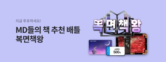 교보문고 MD들이 직접 출연한 책 추천 배틀 ‘복면책왕’의 고객투표가 시작됐다. ‘복면책왕’은 교보문고 MD들이 부캐릭터를 만들어 복면을 쓰고 출연하여 책을 추천하는 유튜브 콘텐츠로 총 8명의 MD가 4팀을 이뤄 책 추천 배틀을 진행한다. 고객투표 만으로 1, 2라운드진출자를 결정하며, 최종 우승자는 24일 특별 기획전을 선보인다.