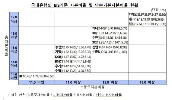 이는 대출자산 등 위험가중자산 증가에도 증자, 순이익 시현 등으로 자본이 증가한 데 기인한다.