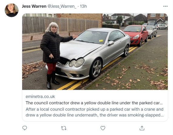 심지어 시의회 측에서 주차된 차들을 크레인으로 들어 올려 도로에 '주차금지'를 표시하는 노란색 이중선을 그린 것으로 알려졌다.