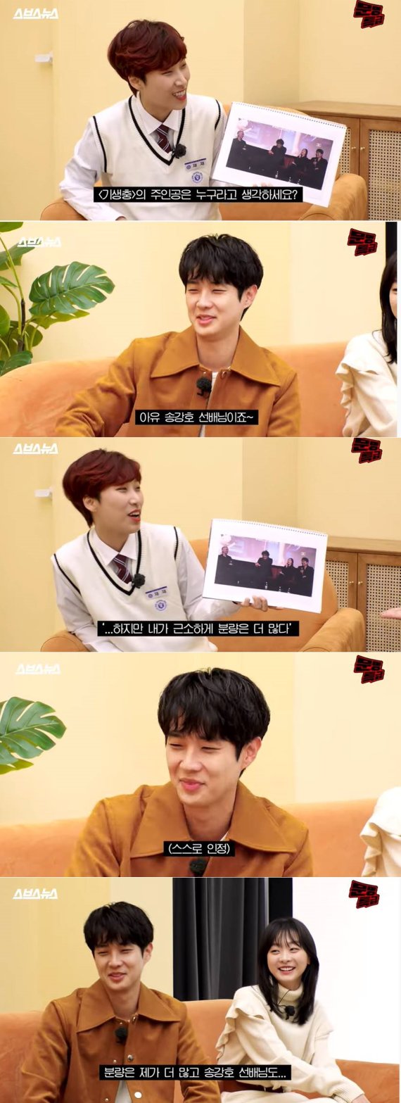 이에 MC 재재는 "우식씨는 '기생충'의 주인공이 누구라 생각하느냐"고 물었고, 최우식은 1초의 망설임도 없이 "송강호 선배님"이라고 답했다.