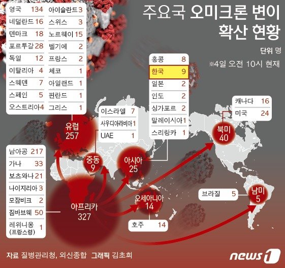 앞서 남아공은 지난달 25일 전후로 자국의 확진 사례를 통해 오미크론의 존재를 처음으로 세상에 공개했다.