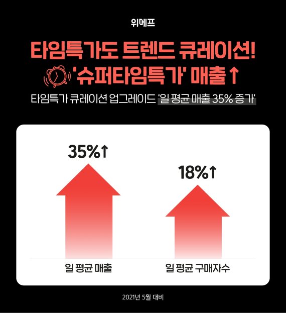 이를 통해 위메프 슈퍼타임특가는 단순히 박리다매형 상품 구성에 그치지 않고 고객이 그 시기에 구매하고 싶은 실시간 트렌드 상품을 가장 저렴한 가격으로 빠르게 선보인다.