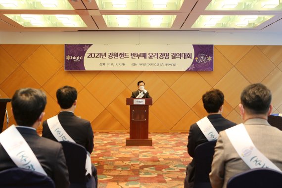 [파이낸셜뉴스] 강원랜드는 7일 하이원 그랜드호텔 사파이어룸에서 ‘2021년 반부패 윤리경영 결의대회’를 가졌다.