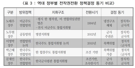 박 센터장은 "합참의장과 미래연합사령관 사이의 전략적, 작전적 판단 과정에서 주도권 갈등이 발생 가능하다"며 "위기상황에서 대응방책 불일치, 전쟁으로 전환 시 주요 결심평가에 대한 불일치 등이 나타날 수 있다"고 분석했다.