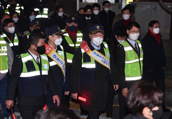이 대표는 "최근 경찰공무원의 (범죄) 대응이 미진했다는 얘기가 나오는데 그게 경찰공무원의 역량이라기보다는 근무하면서 적극적인 상황 대처가 어려운 원인이 있다면 야당이 해소하기 위해 입법을 보완할 수 있을 것"이라고 말했다.