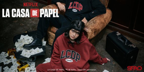 스파오와 협업한 넷플릭스 오리지널 시리즈 ‘종이의 집’은 한 천재 교수와 범죄 전문가들이 조폐소와 중앙 은행을 습격하는 내용을 담은 범죄 스릴러 드라마다. 넷플릭스 콘텐츠 중 시청자 수 10위 안에 드는 글로벌 인기 시리즈다.