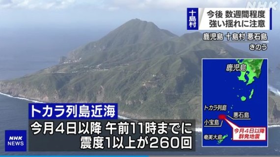 (서울=뉴스1) 김민수 기자 = 일본 가고시마현 도카라 열도에서 4일부터 발생한 지진이 앞으로 한 달 동안 지속될 수 있다는 전망이 나왔다.