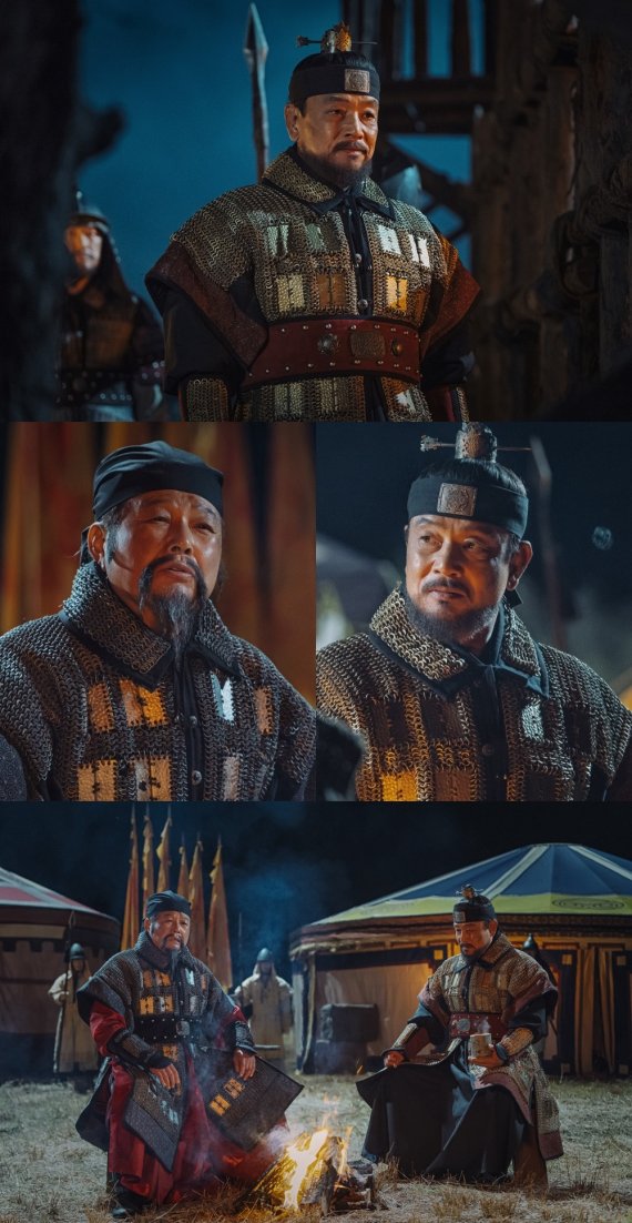 이날 공개된 스틸 사진 속 김영철(이성계 역)과 선동혁(이지란 역)은 야심한 밤, 모닥불을 사이에 놓고 앉아 진지한 이야기를 나누고 있다. 두 사람은 핏줄 이상의 유대감을 가진 의형제로서 함께 전장을 누비게 된다.
