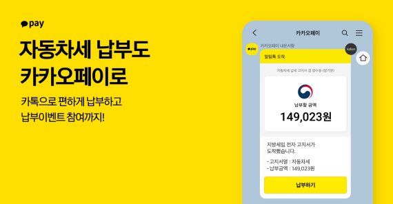 카카오페이 측은 "카카오페이 청구서는 소비자들이 자동차세 납부 과정에서 느꼈던 복잡함과 어려움을 해소해 왔다"며 "많은 이용자들이 이번 이벤트를 통해 카카오페이 청구서의 편리함과 이로움을 느껴보시길 바란다"고 말했다.