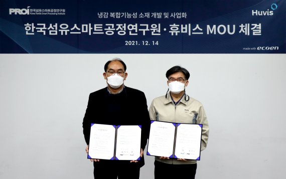휴비스는 한국섬유스마트공정연구원과 지난 14일 ‘냉감 복합기능성소재 개발 및 사업화’에 대한 업무 협약(MOU)을 체결했다고 15일 밝혔다.