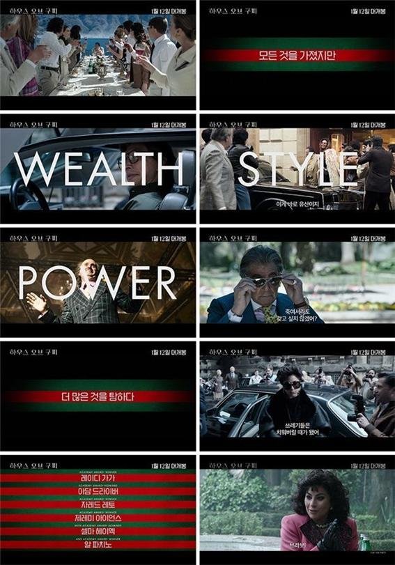 여기에 배우 아담 드라이버는 구찌의 미래를 책임질 젊은 후계자 '마우리찌오 구찌' 역으로 등장한다. 이어 배우 알 파치노와 제레미 아이언스는 각각 구찌의 최고 경영자 '알도 구찌'와 구찌 가문의 역사이자 리더 '로돌포 구찌' 역을 맡았다.
