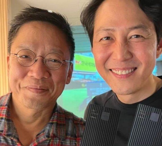 정 부회장은 14일 자신의 페이스북에 이정재와 함께 찍은 사진을 올리며 "'오징어게임'을 기념하기 위해 그의 블랙카드에는 드라마의 456번을 부여하고 나는 오일남의 1번. 그런데 이 두 번호가 골든글로브로 간다"고 전했다.