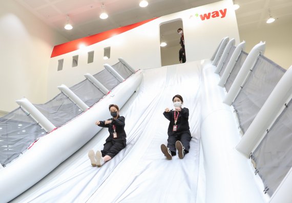 지난해 김포공항 화물청사에 훈련센터를 건립한 티웨이항공은 버추얼 슬라이드 시스템, 화재진압실, 기내 실습실 등 최신 훈련장비를 설치 운영하고, 최근 A330-300 항공기의 비상탈출 및 도어 훈련 시설을 추가로 설치했다.