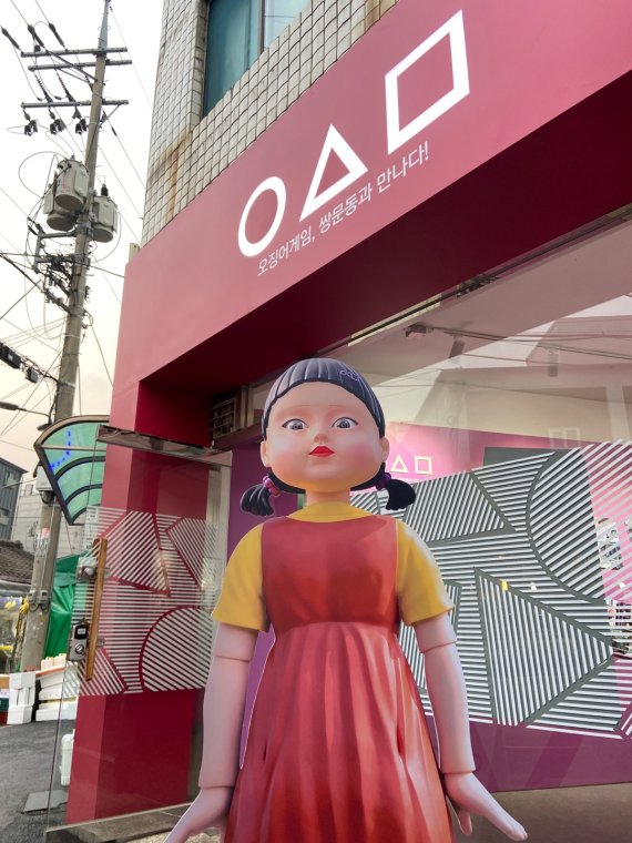 [서울=뉴시스] 이종희 기자 = 서울 도봉구는 글로벌 흥행 드라마 '오징어게임'의 촬영지이자 배경지인 쌍문동 백운시장 내에 '오징어게임 체험관'을 마련했다고 21일 밝혔다.