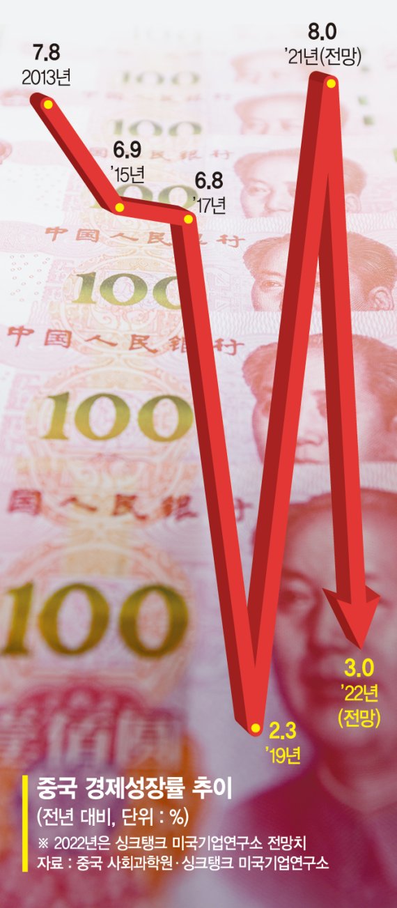 중국 경제성장률이 3%대로 하락한 것은 코로나19 위기가 최고조에 달했던 지난해(2.3%)을 제외하고 톈안먼 사태 역풍을 맞았던 1990년(3.8%) 이후 32년 만에 처음이다.