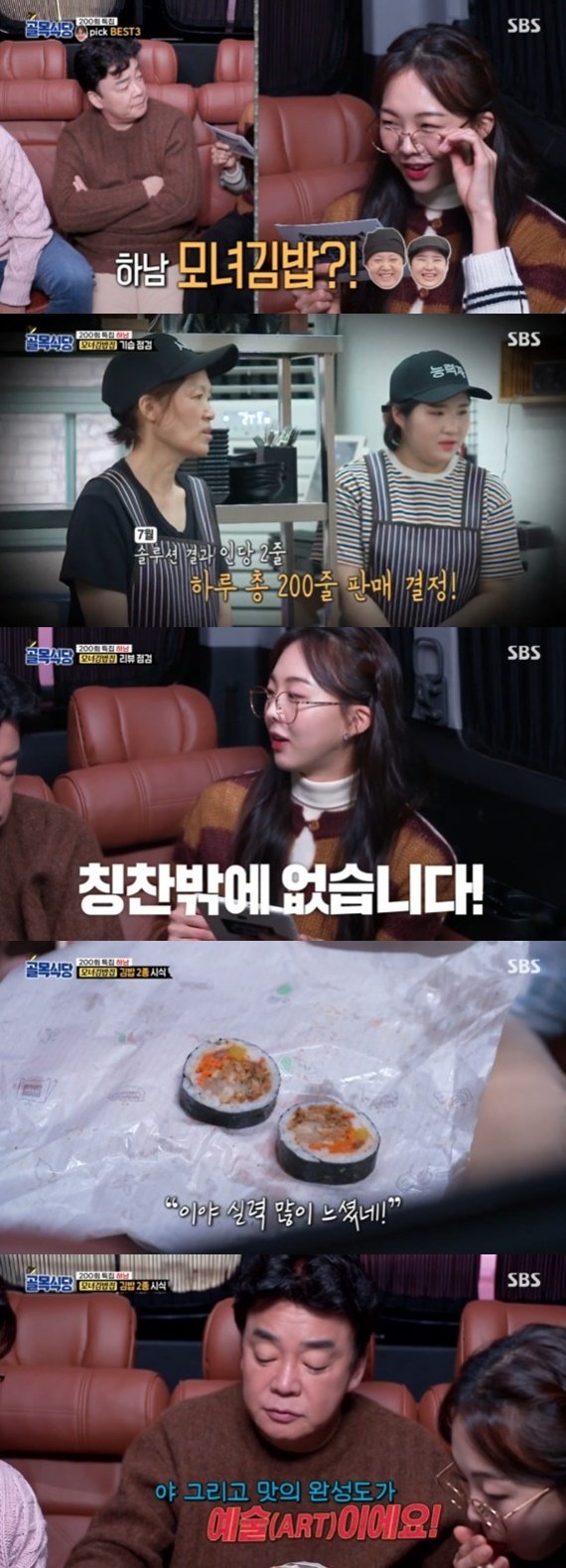 김밥의 단면을 보며 꼼꼼히 확인한 백종원은 "실력 많이 늘었다, 맛의 완성도가 예술이다"라며 흐뭇해했다.