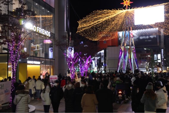 갑자기 추워진 날씨에 시민들은 패딩을 입고 목도리를 두른 채 손을 호호 불며 크리스마스 밤거리를 거닐었다.