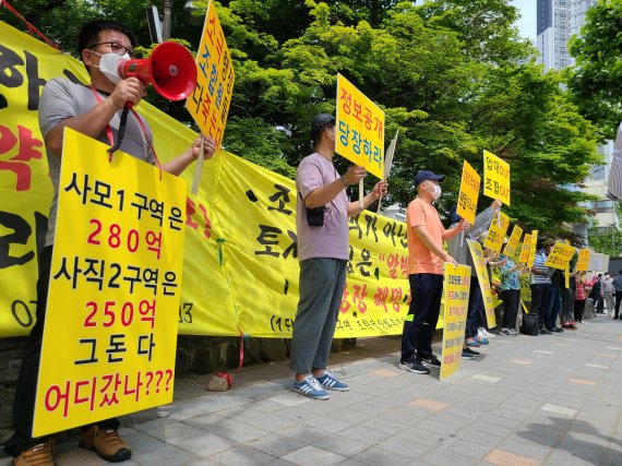 이들은 "사업의 빠른 진행을 위해 조합을 믿었던 조합원들은 대출을 받아 5000만원을 냈으나 조합은 몇 달 후 이자 지원을 중단했다"며 "조합원들이 추가 납부한 액수는 70억원 상당으로 이는 사업부지 내 모든 토지의 계약금을 내기 충분하다"고 강조했다.