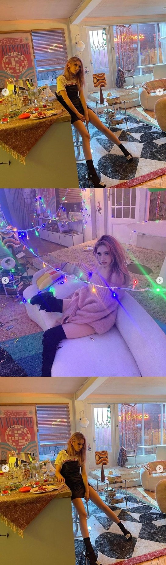 전소미는 지난 26일 오후 자신의 인스타그램에 뮤직비디오 촬영 중인 사진을 여러장 게재했다. 사진 속 전소미는 의자에 앉아 다리를 뻗고 있다.