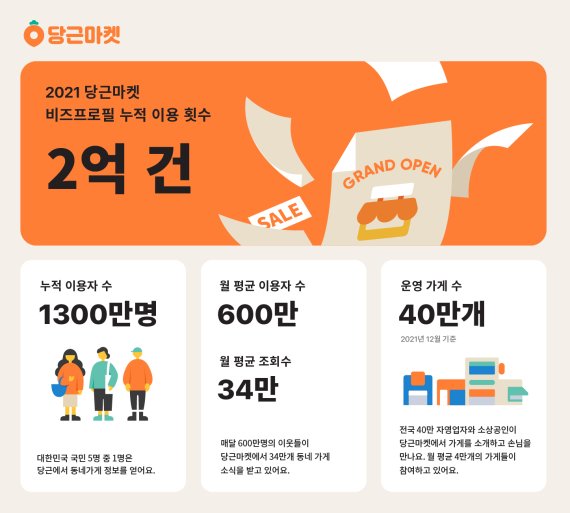 (서울=뉴스1) 이정후 기자 = 당근마켓은 지역 중소상공인과 지역 주민을 연결해 주는 비즈프로필의 이용 횟수가 올 한 해 2억건을 돌파했다고 27일 밝혔다.